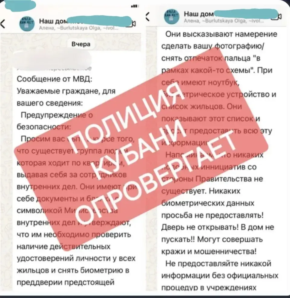 В соцсетях и мессенджерах распространяет ложная информация о неизвестных, которые якобы представляются сотрудниками полиции и ходят по квартирам. Это не соответствует действительности.