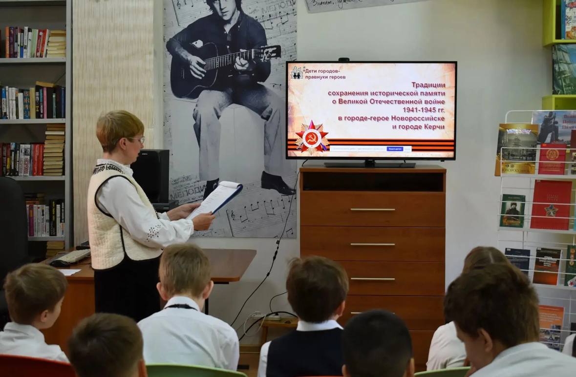 В рамках международного проекта «Дети городов – правнуки героев» телемост «Два города-героя» был организован между новороссийской Центральной городской детской библиотекой им. Н.К. Крупской и керченской библиотекой-филиалом № 8 им. А. Гайдара.