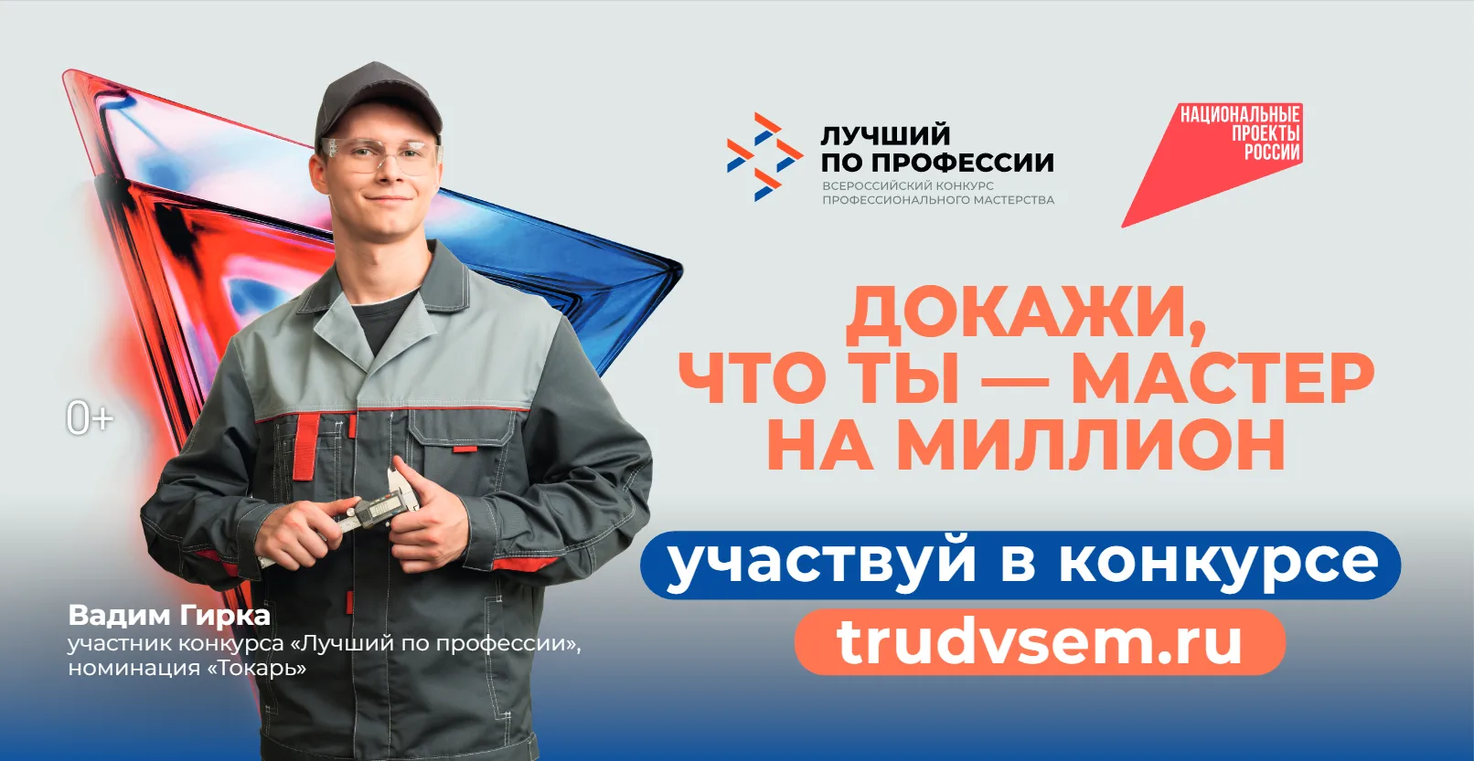 Прием заявок уже стартовал. Конкурс проводится в рамках нового нацпроекта «Кадры» и включает 25 номинаций: от токарей и сварщиков до поваров, швей и операторов станков с числовым программным управлением.