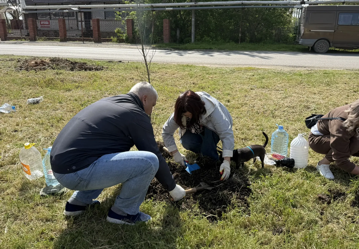 Деревья высаживали вместе: и ученики школы № 61, и работники библиотеки, и военные волонтёры, и представители ветеранских организаций, а также председатель городской Думы Вера Фёдоровна Галушко и глава Пашковского сельского округа Владимир Евгеньевич Митин.