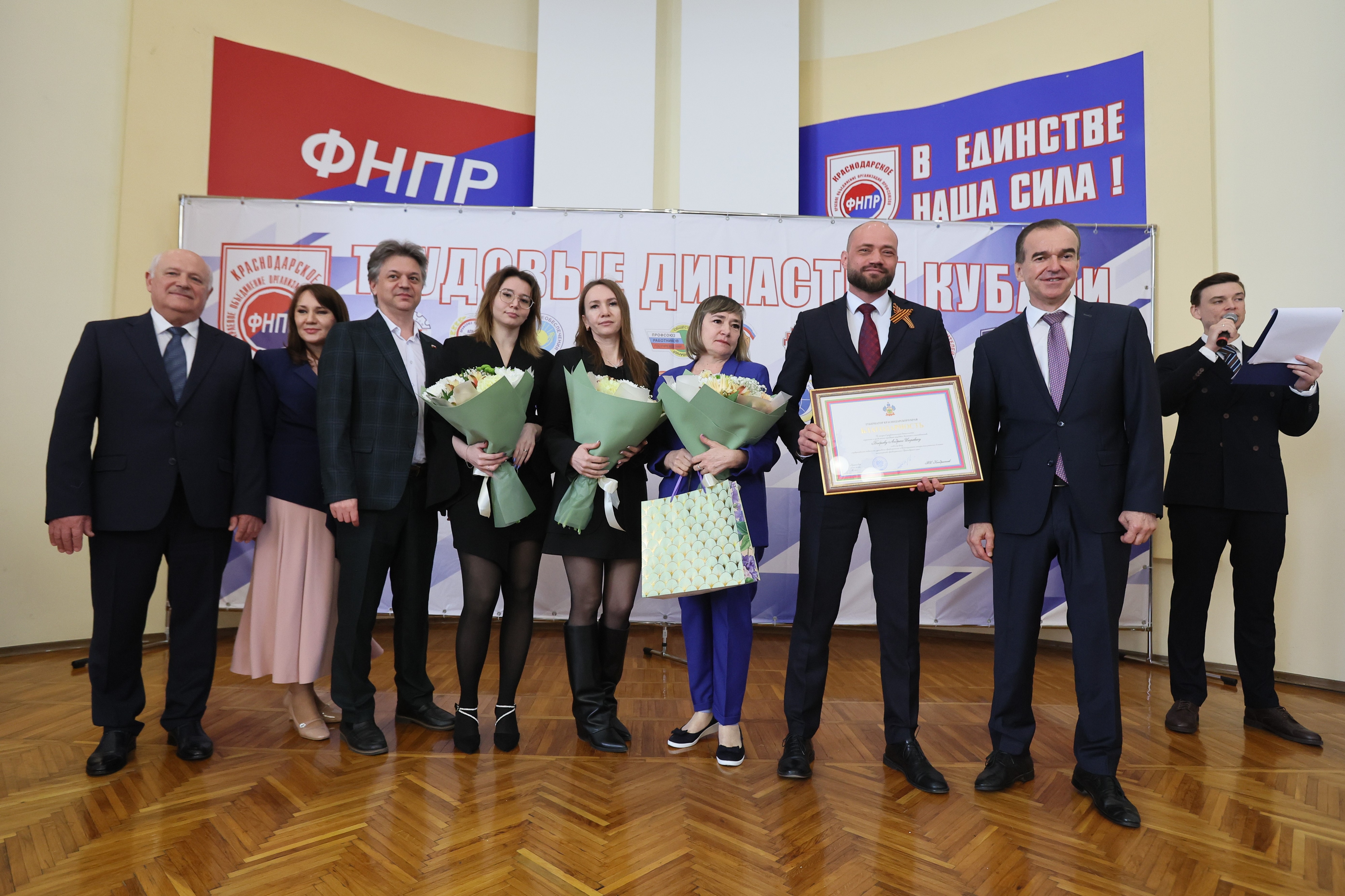 Вениамин Кондратьев и Светлана Бессараб поздравили представителей трудовых династий Кубани. Им вручили путевки в санаторий и благодарности губернатора за многолетнюю, добросовестную работу и высокий профессионализм.