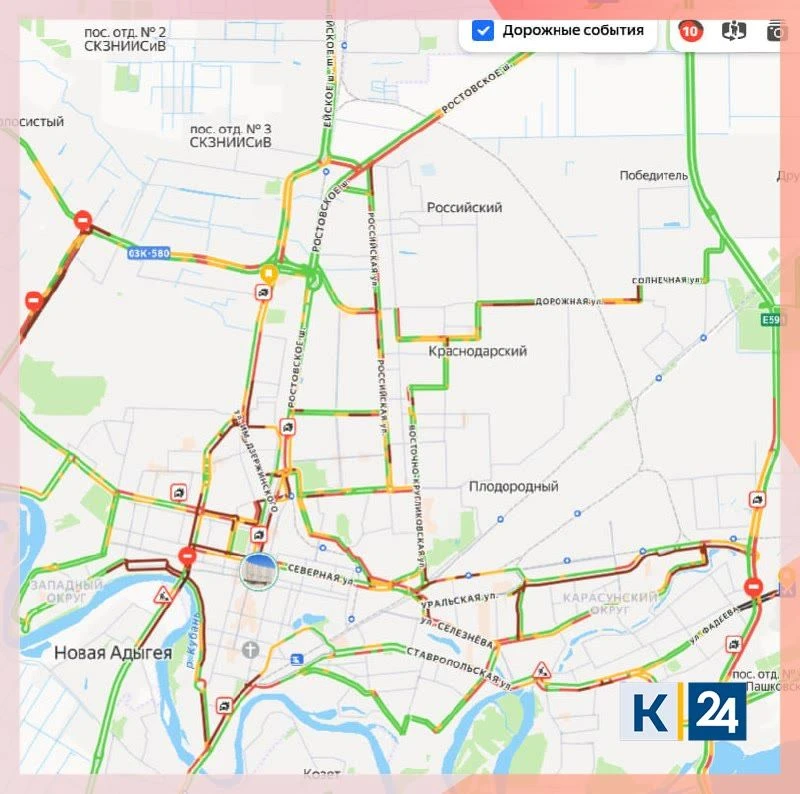 10-бальные пробки сковали Краснодар в преддверии праздников.