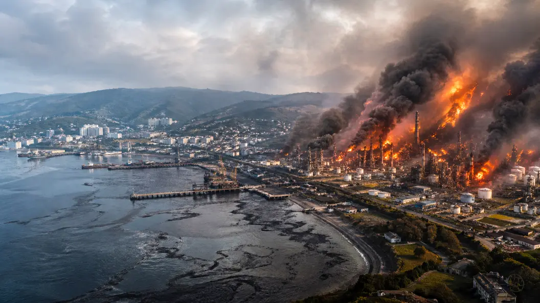 Она добавила, что рядом с НПЗ, который подвергается атакам, находится городской пляж. Людей туда сейчас не пускают. На реке и в море выставлены боны, удерживающие мазут.