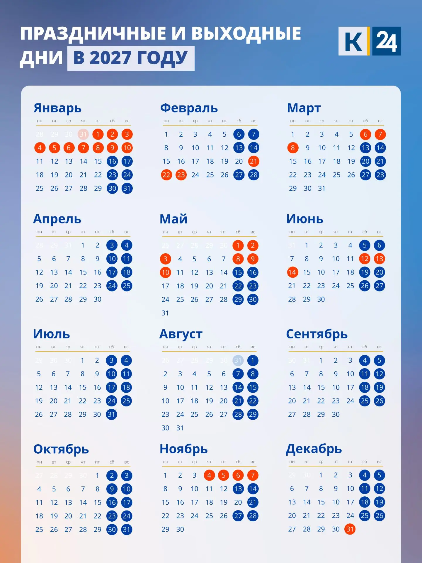 11 дней продлятся новогодние каникулы в 2027 году.