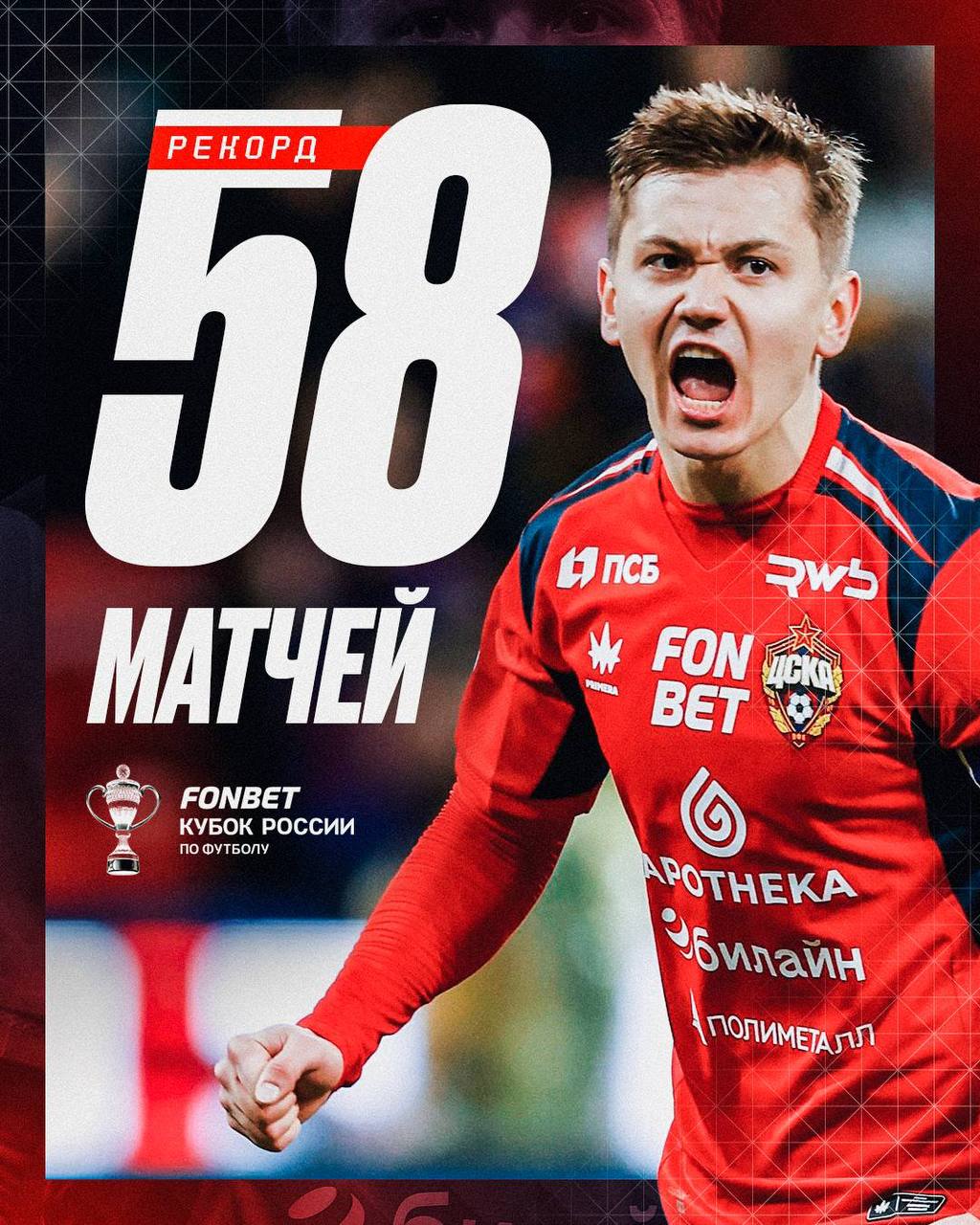 Футболист московского ЦСКА Иван Обляков установил новый рекорд Кубка России по количеству проведенных матчей.