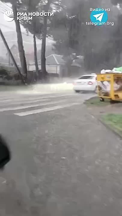 Сильный дождь подтопил улицы курорта. Брызги воды на метры разлетаются от колес авто. Кадры непогоды – в видео.0 Подписаться на РИА Новости Крым в Telegram / MAX / VK